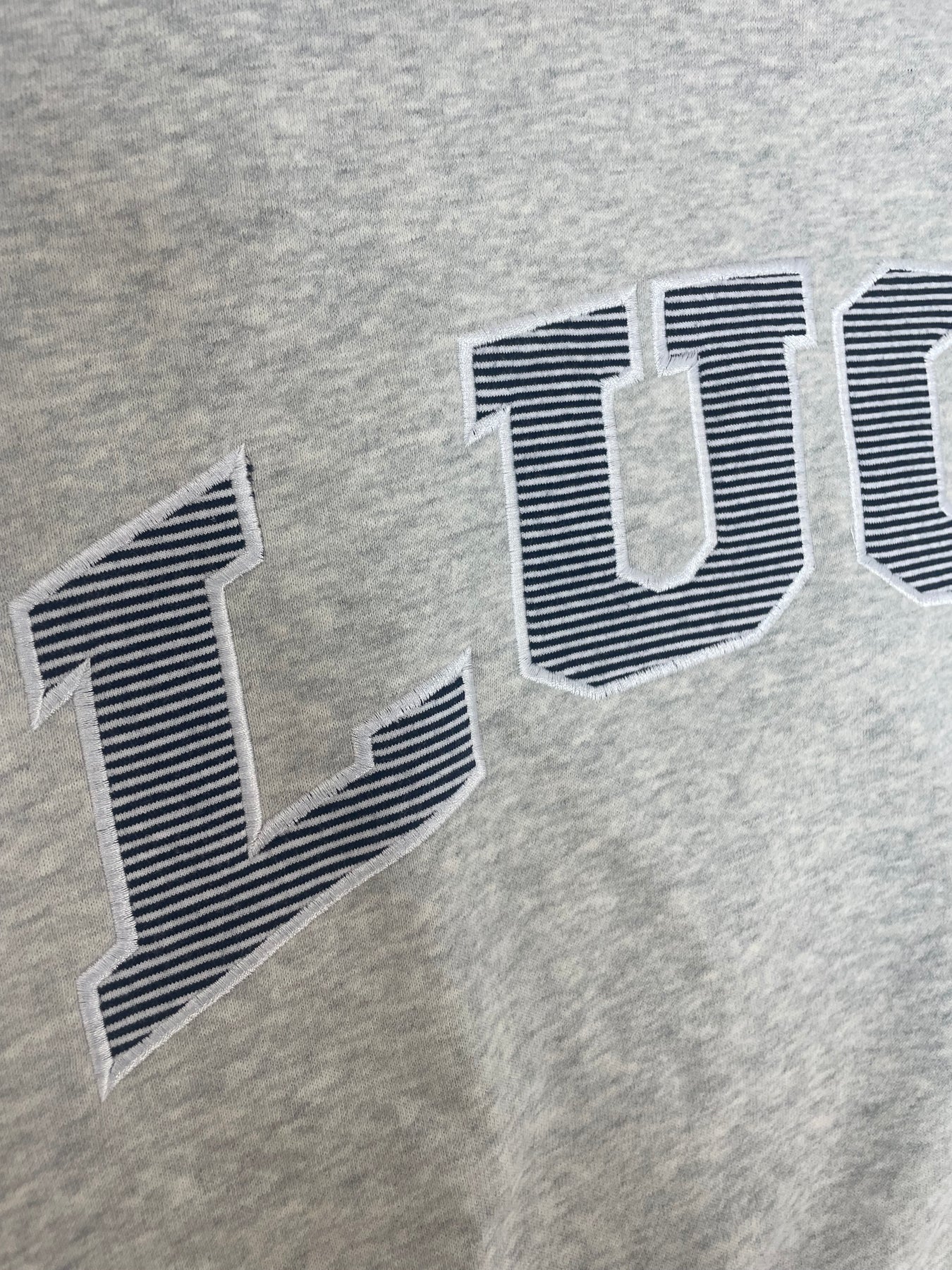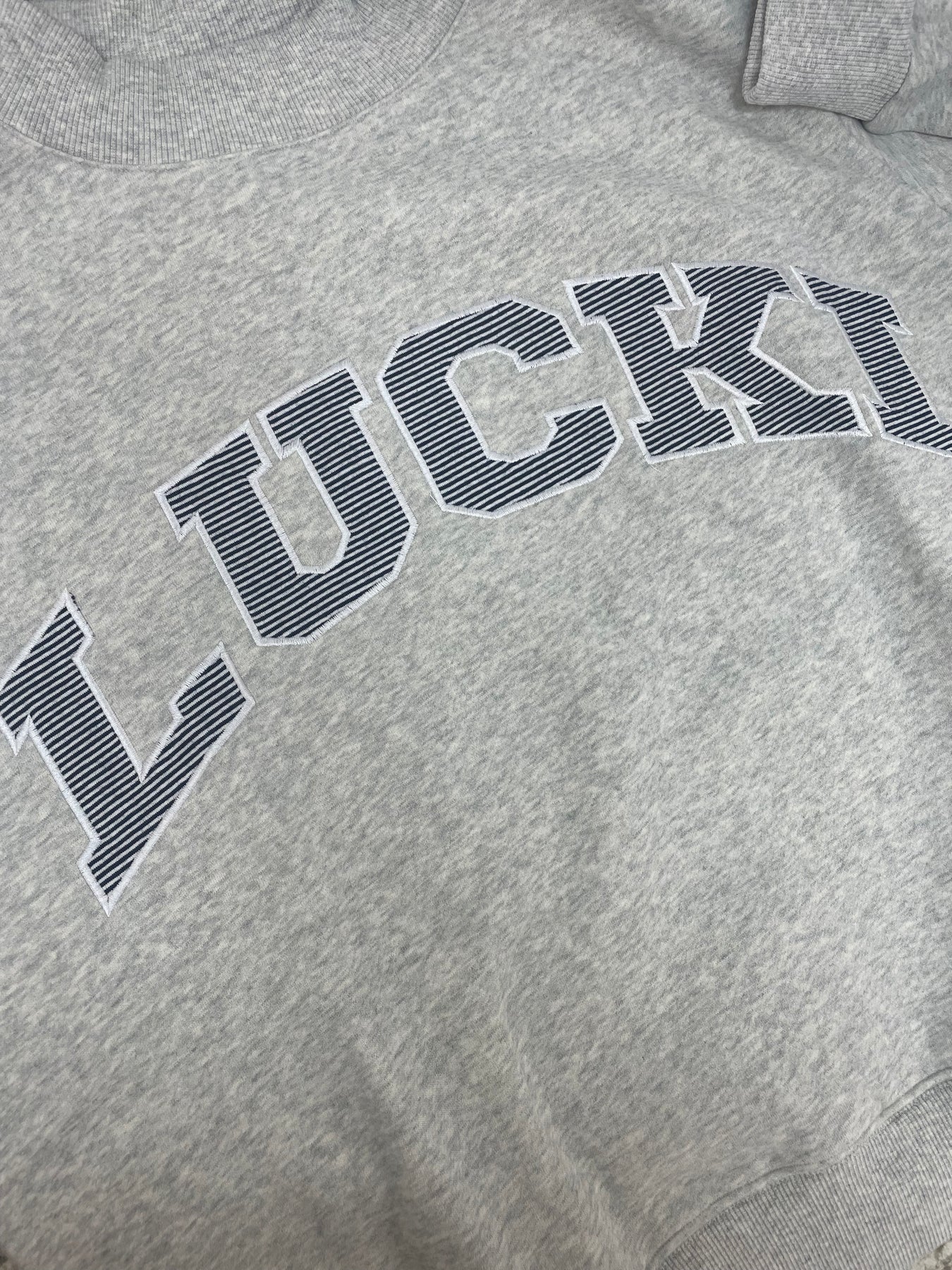 Mockneck stitched sweatshirt with horizontal navy striped Lucki lettering