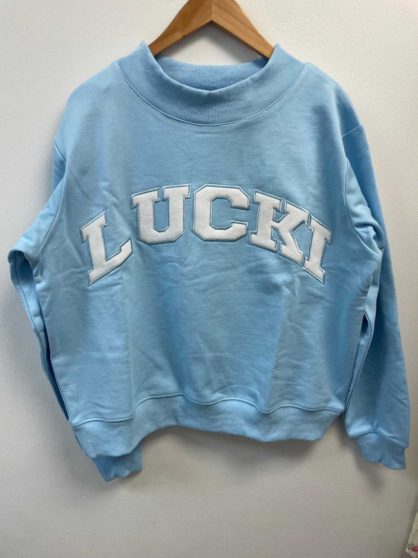 Mockneck stitched sweatshirt with felt Lucki lettering