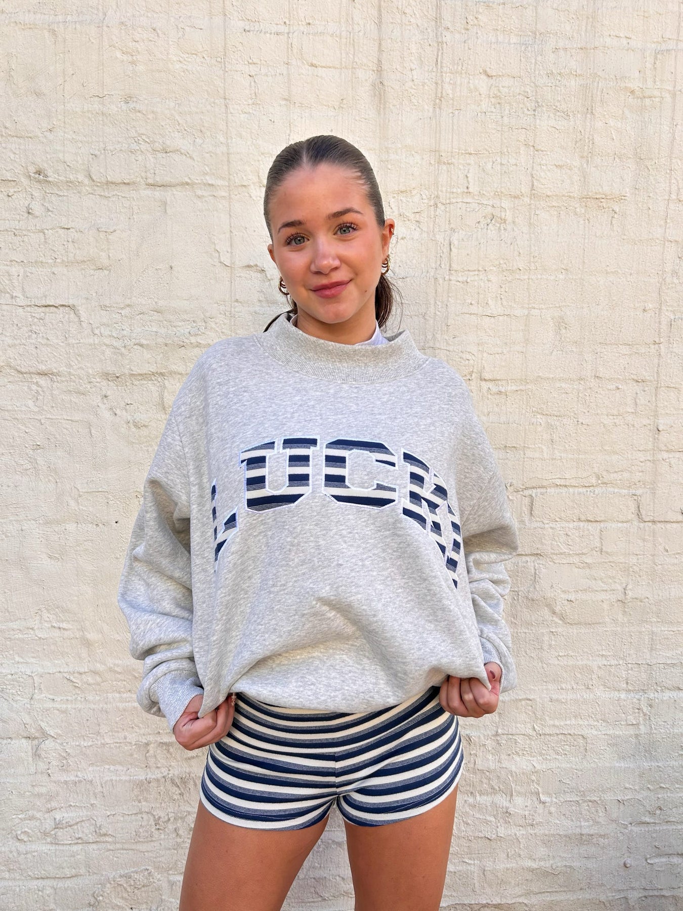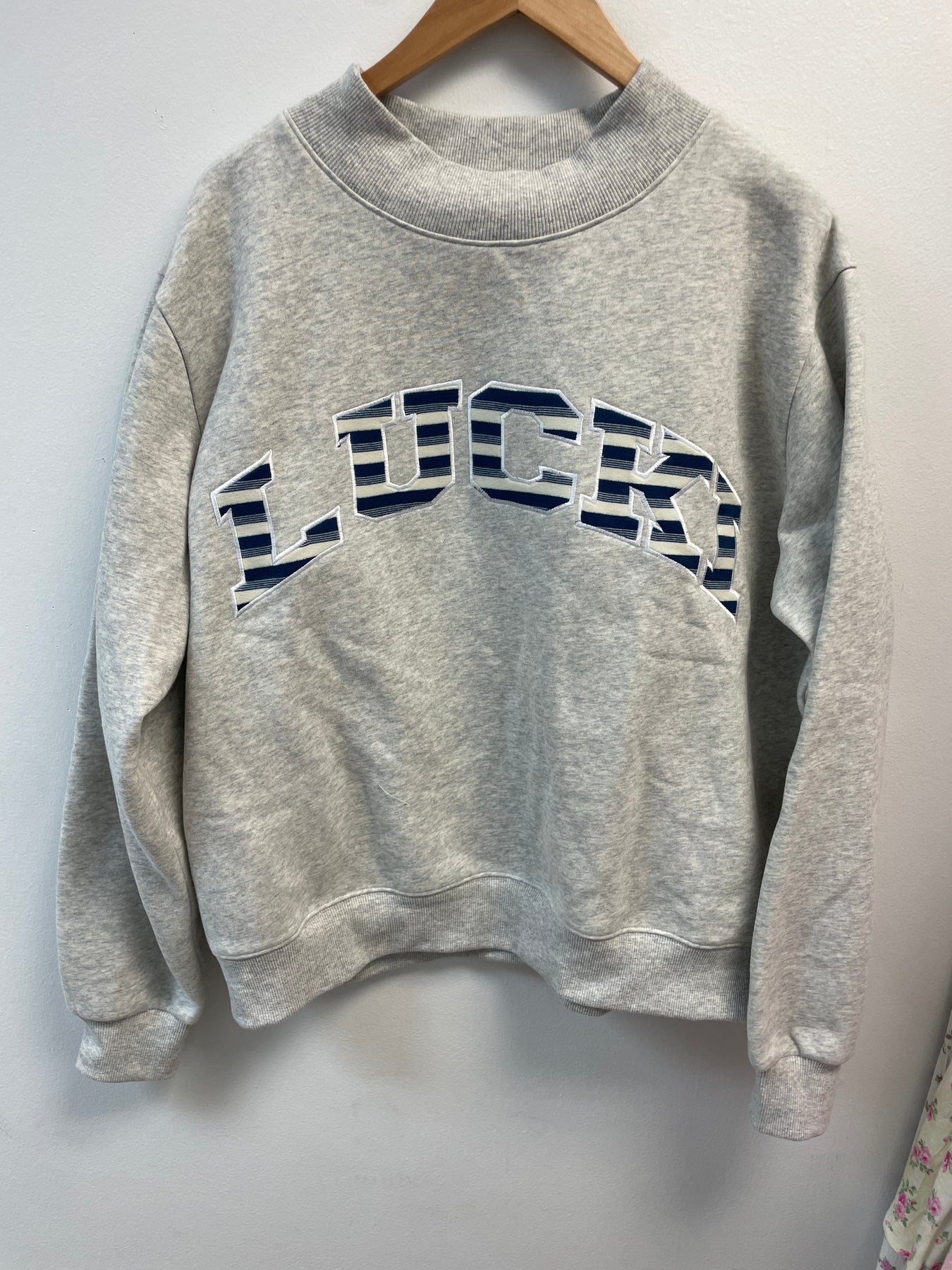 Mockneck stitched sweatshirt with horizontal striped Lucki lettering
