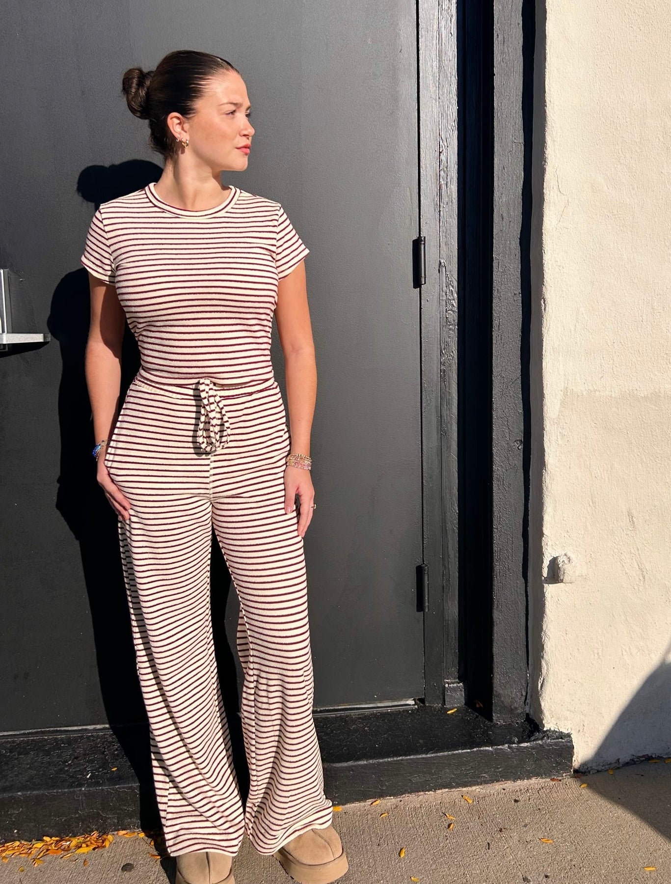 Terry fabric striped pant with adjustable drawstring in the front and side pockets